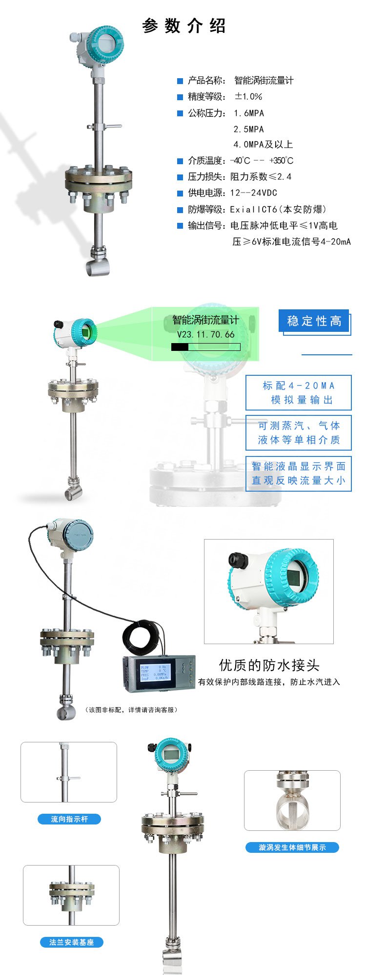 插入式渦街流量計采用壓電應力式傳感器可靠性高可在-20℃~+350℃的工作溫度范圍內(nèi)工作。